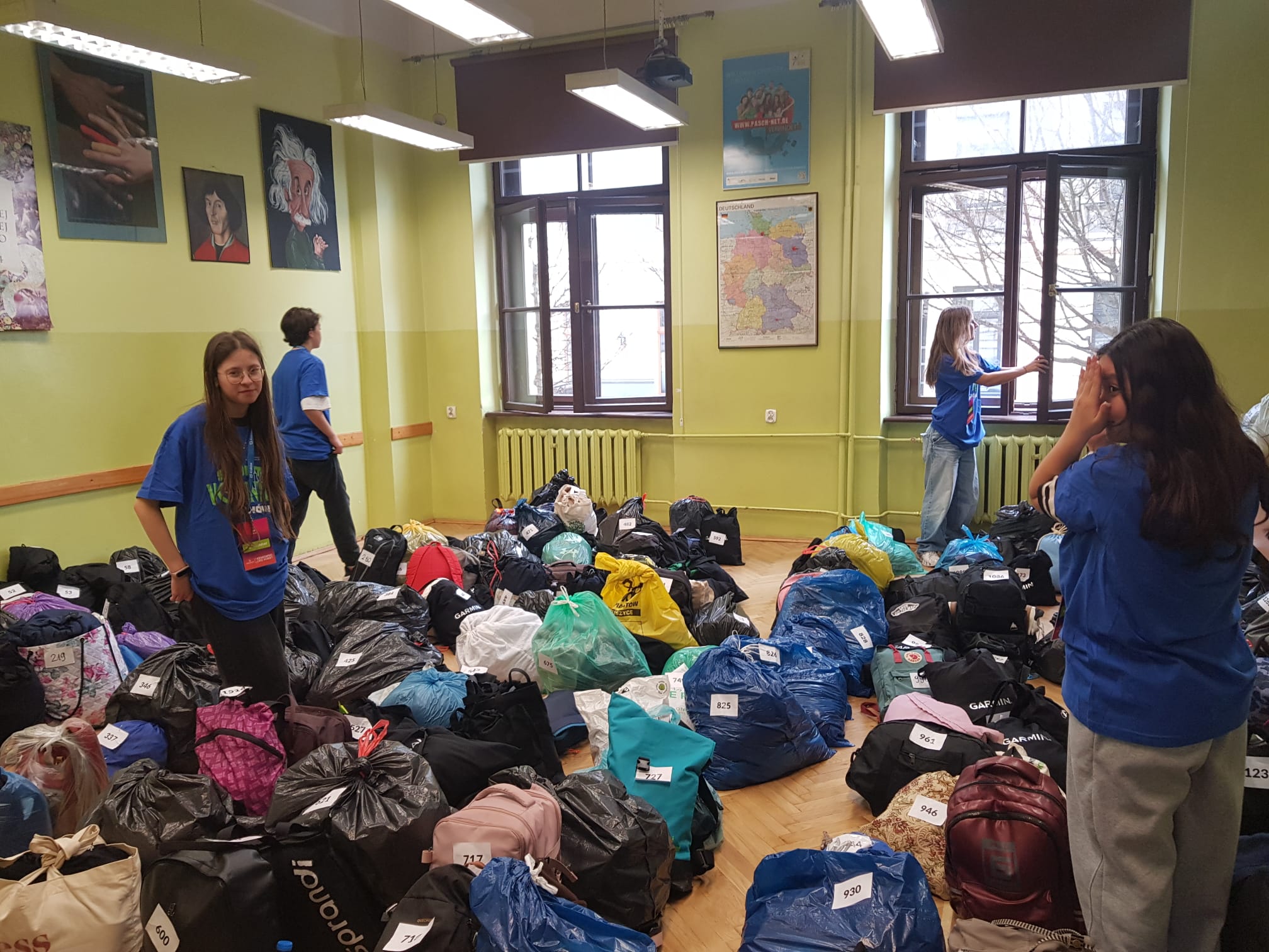 Można by pomyśleć: “Co to za problem wydać kurtkę czy plecak?”. Nic bardziej mylnego! Przy 3000 uczestniczek nasz szkolny depozyt zamienił się w prawdziwe centrum operacyjne.